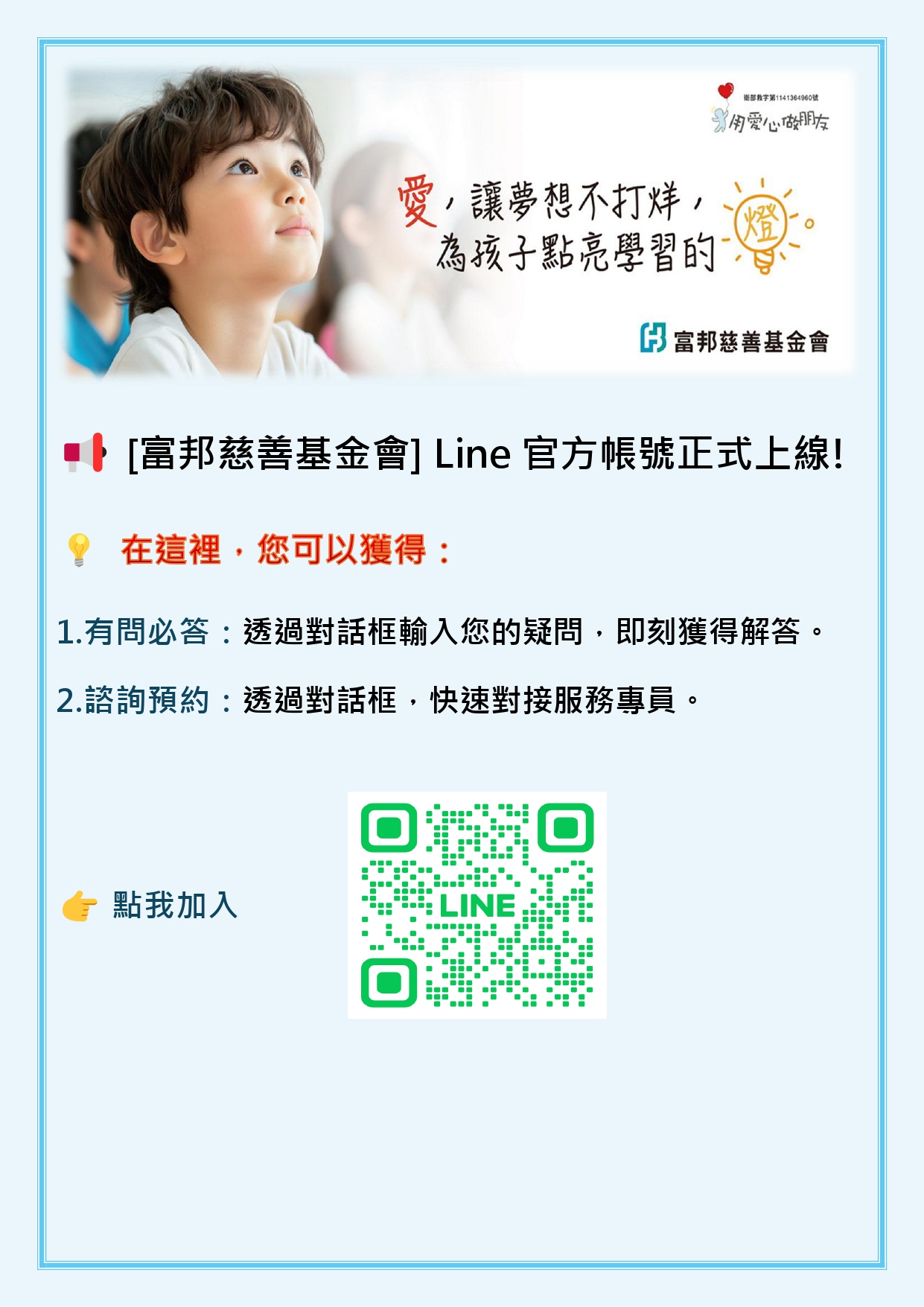 誠摯邀請社福夥伴加入「富邦慈善基金會」官方 LINE!