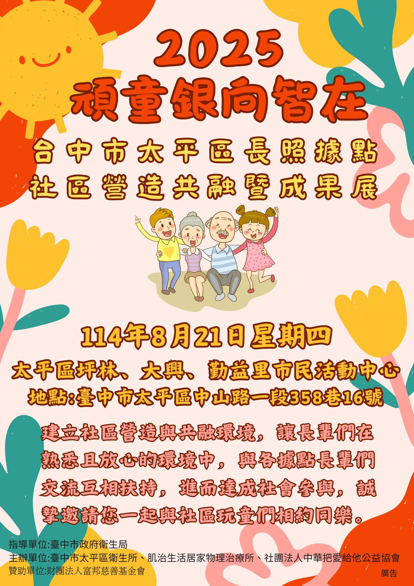 3.以社區宣導方式,讓社區長者覺察自我身體健康概況,進而發掘社區隱性個案,提供穩定且長期的社區服務,引導長者健康老化。