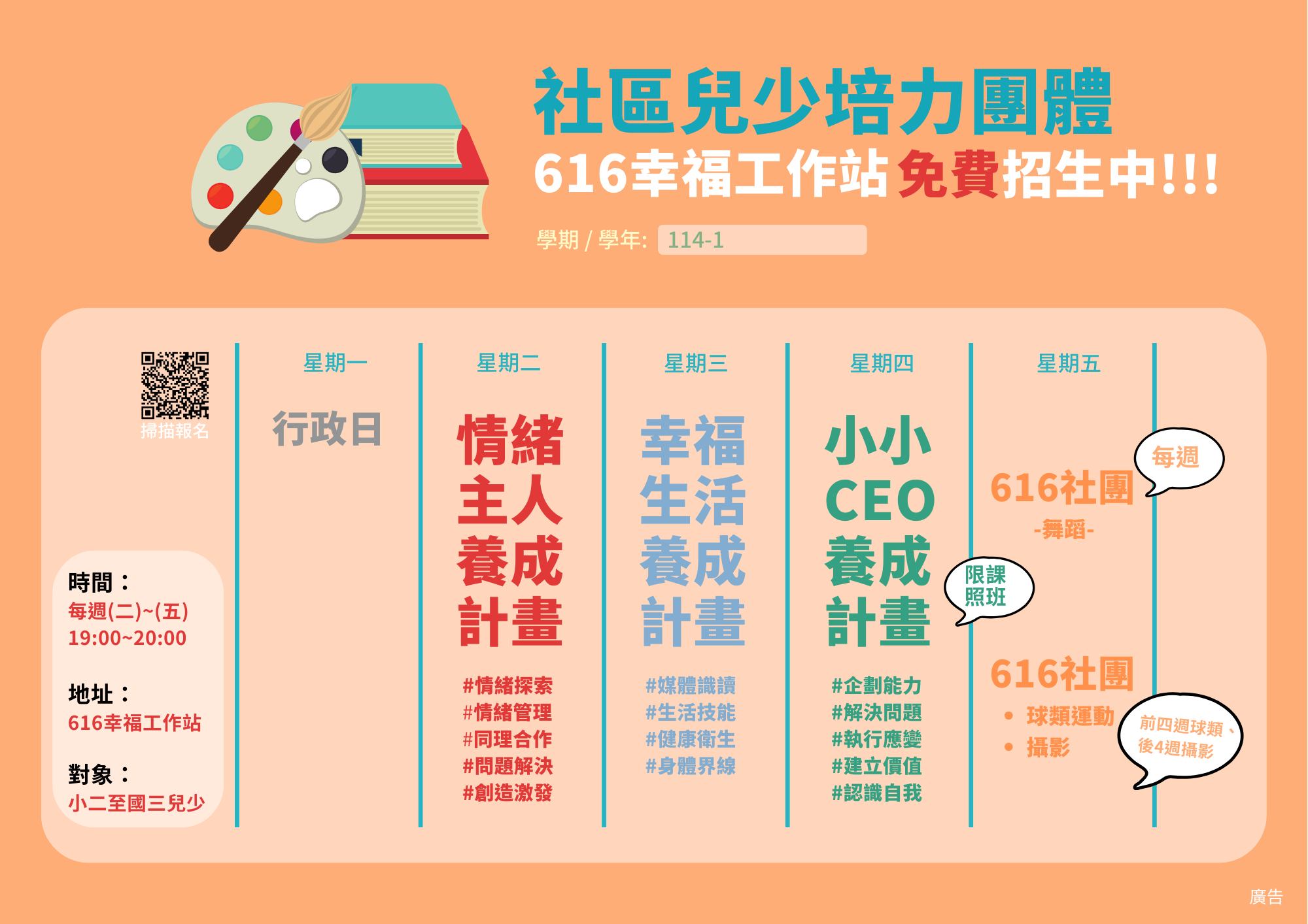 單位:社團法人中華民國更生少年關懷協會—616幸福工作站