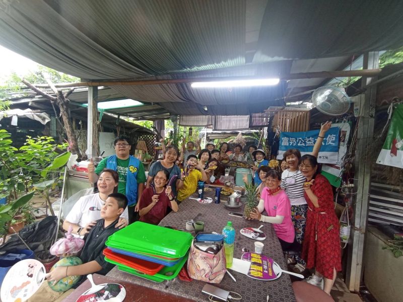 在多方參與下展現豐富成果。慢飛天使在香草栽種、窯烤料理、木工手作等領域皆有明顯進步,無論在專注力、操作能力或自信心上均大幅提升。植物拓染課程不僅讓孩子與志工認識植物纖維與色素的自然之美,也讓富邦志工與築夢媽媽志工習得可延伸運用的技能,為未來陪伴帶來更具創意的元素。 回收棧板的再製過程中,孩子在專業志工帶領下完成花架與雞舍,理解資源循環的精神,也提升合作與溝通能力。窯烤實作活動更促成社區交流,社區夥伴分享不同文化中月桃葉的使用方式,使食農教育不只停留在技能,更拓展至文化故事與生活智慧。 成果分享活動亦成功凝聚社區、家庭與志工的力量。透過展出植物拓染作品、木工作品與香草料理,讓更多人看見慢飛天使的努力與成長,進一步提升社區支持,營造友善、包容且持續陪伴的共融環境。 8/6窯烤為主、9/30植物拓染為主為兩場大活動,兩場總計參與人數80人次 7/1~11/30 固定辦理培力工作坊,每週2次,20週,參與人數達10人,總計40場,人數400人次