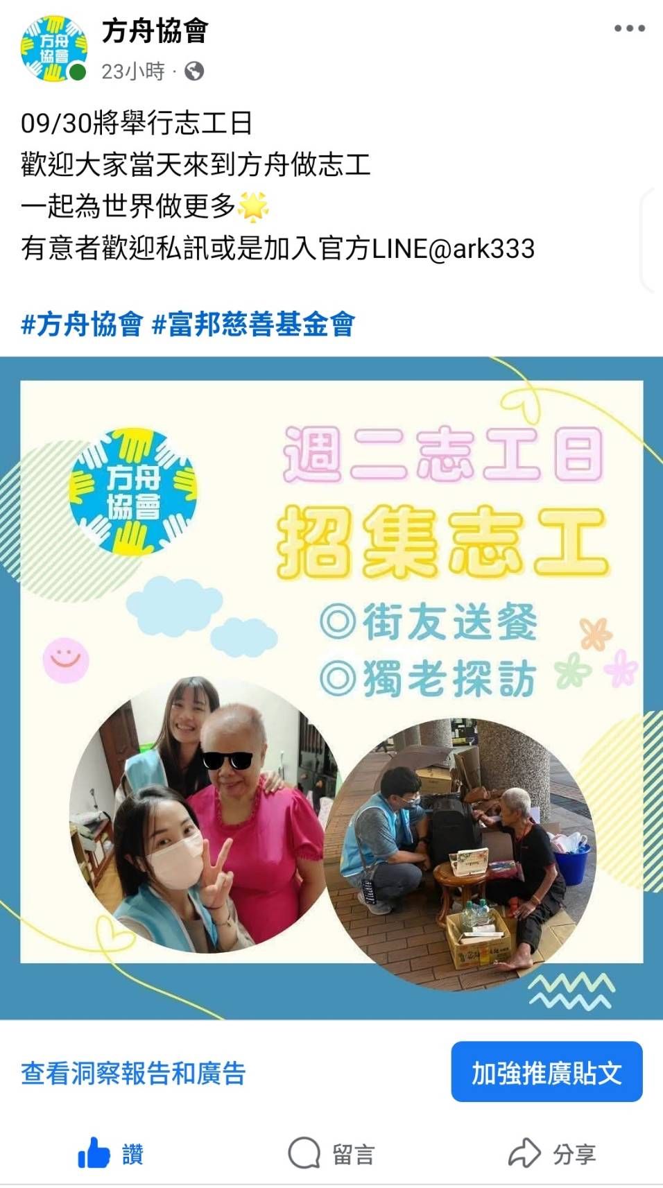 「方舟協會」方舟協會,由一群來自各行各業,各年齡層,希望讓世界更好的人所組成。參與過協會輔導員活動的輔導員遍佈全 台,北、中、南,甚至也影響這些輔導員自發性做起公益活動。除了台灣,也深入國際間需要幫助的地方。