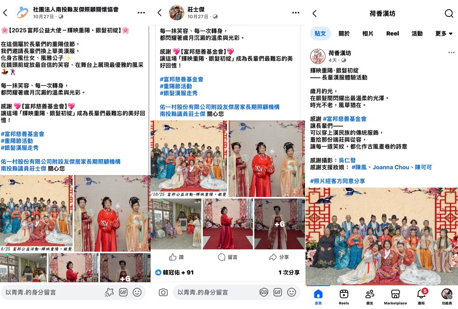 iii. 提升長輩自信與尊嚴這場活動讓長輩們穿上中式漢服,走上舞台,參與走秀,這樣的體驗能顯著提升他們的自信心和尊嚴。在活動中,長輩們將感受到自己仍然充滿風華,進而增強他們的自我價值感和社會參與感。