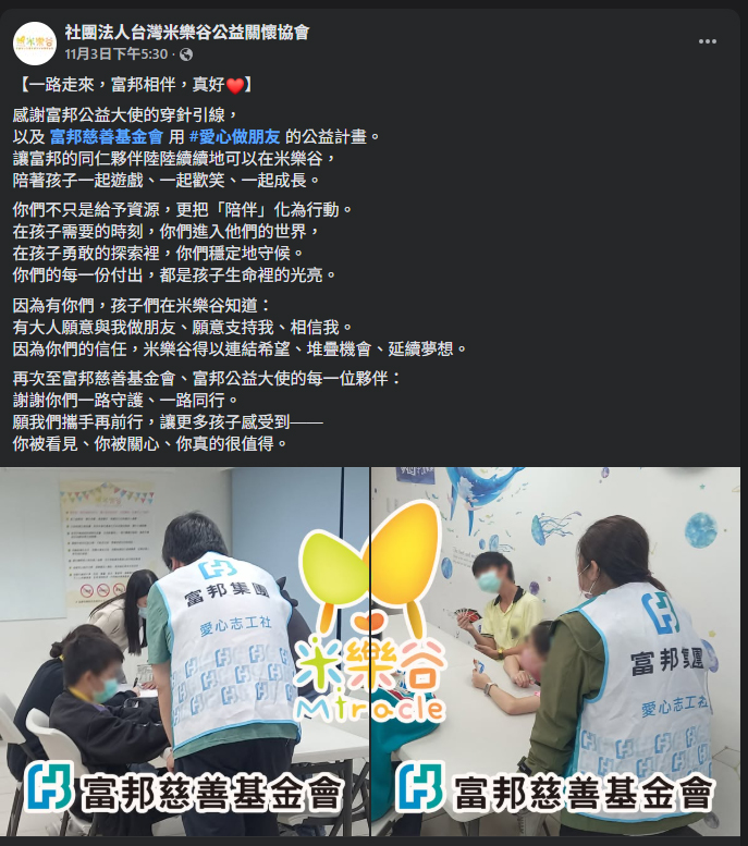 米樂谷期待每個孩子都能享有被愛、被陪伴與被照顧的權利。