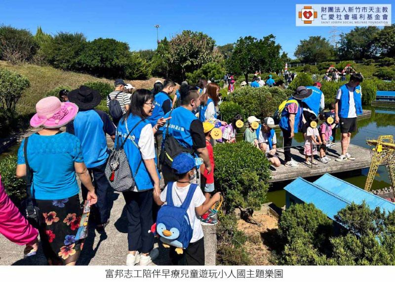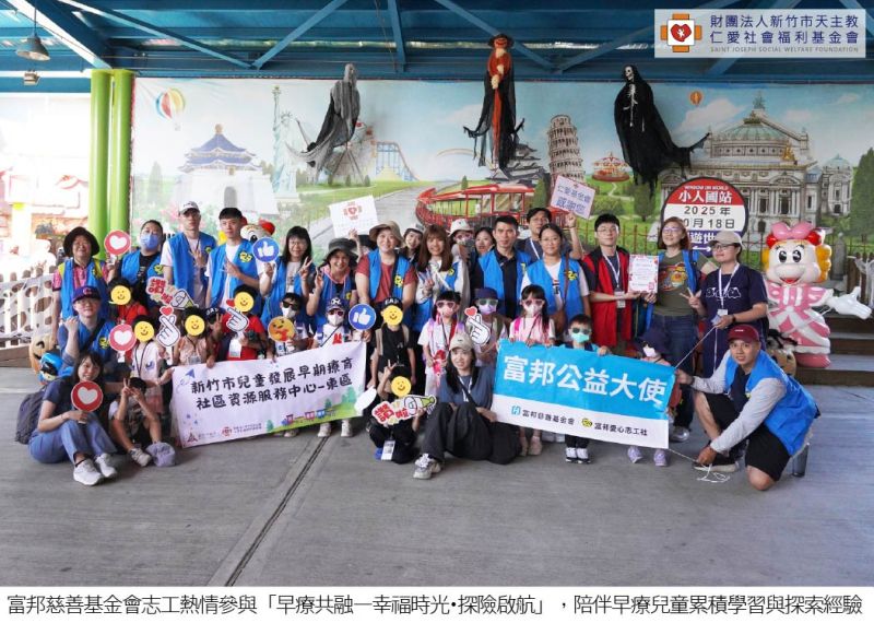 辦理早療與社區兒童及其家長參與親子遊戲基地活動,藉由多元感官與認知教具促進探索與互動,強化親子共玩與社區交流;並同步提供幼兒發展與早療諮詢,協助家長獲得實質支持與教養策略。 邀請早療兒童、社區兒童及其家長參與親子共融活動,透過 diy、繪本等活動促進家庭情感連結,增加早療兒童與社區兒童的互動,營造友善共融氛圍並提升社會對早療的認識與支持。 安排弱勢家庭早療兒童至小人國主題樂園,透過多樣景觀與互動設施,讓兒童在遊戲中認識世界建築、拓展文化視野,並在自然情境中全面促進均衡發展。富邦志工一對一帶領早療兒童進行活動,陪伴上下車、排隊、用餐、如廁,以及引導與解說等,安全守護並給予孩子情緒支持,透過一天的歡樂互動,小朋友們與志工培養了好默契、好感情,在開心學習中累積了豐富的探索經驗。