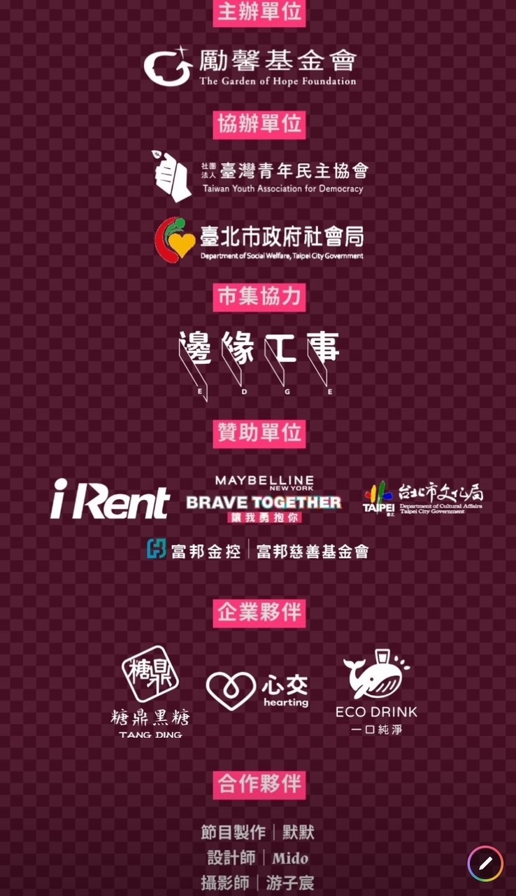 本年度主活動於9月13日假圓山花博舉行,包含音樂演出、live podcast、議題市集、展覽等四大內容,觸及總人流約20,000人次。