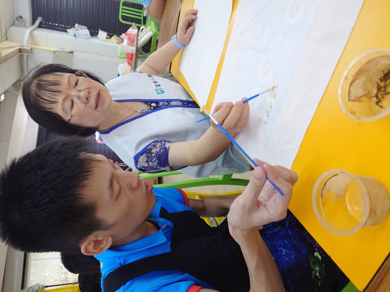 四、透過藝術創作的過程,本課程實踐藝術平權的理念,讓身心障礙者也能平等地接觸、理解並表達藝術。參與者不僅能在課堂中培養對色彩與圖像的基本美感認知,更可在作品完成後經由展示或與家人分享,進一步擴展其文化參與的經驗與價值感。