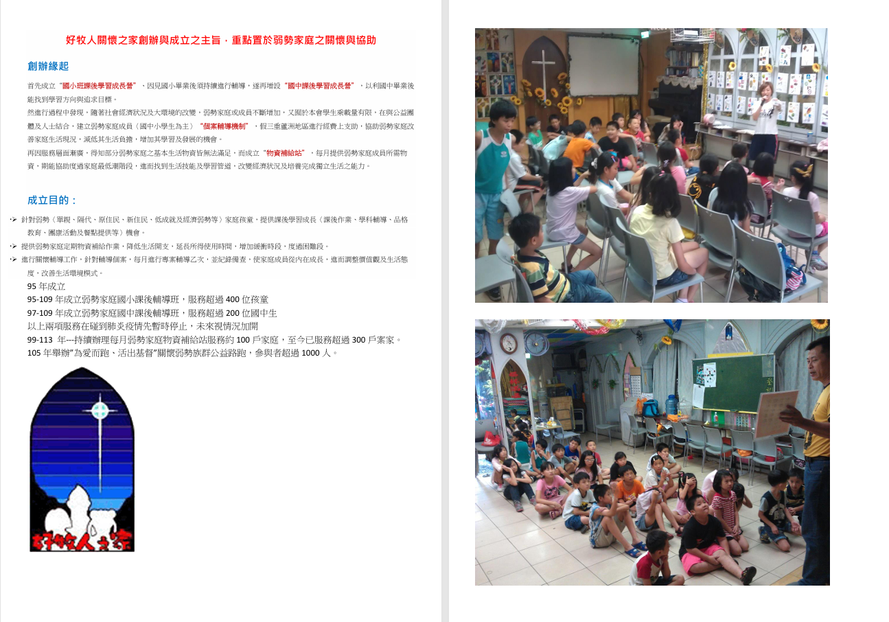 本會以關懷弱勢族群,發展慈愛關懷為主旨,連結全台群眾與基督教會力量,進行社會救助與活動。