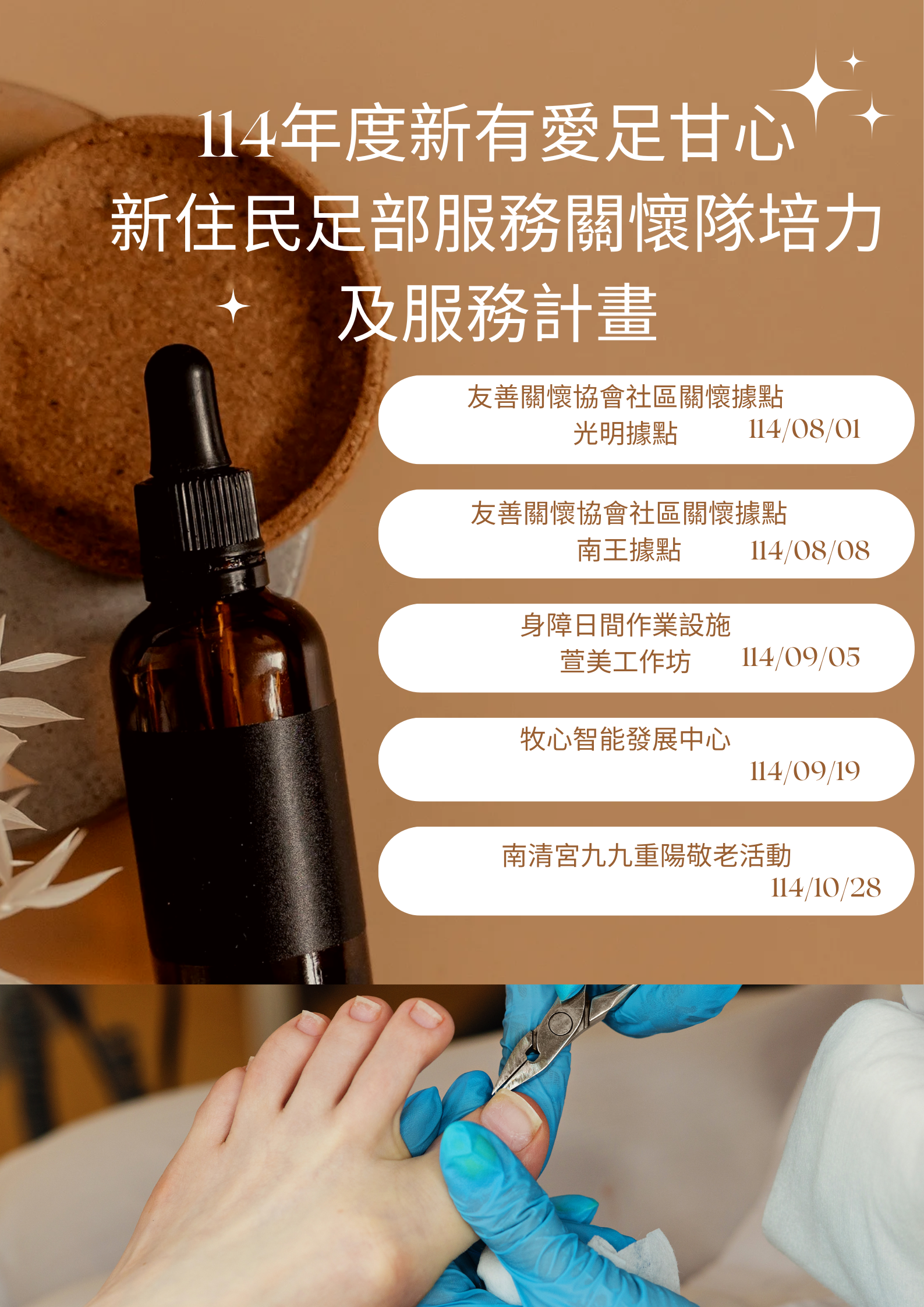 | 足部服務器具與耗材:1.酒精、乳液、趾甲修剪器具、醫藥箱、板凳、臉盆、毛巾、防護衣等器具 2.足部服務相關用品、器具之收納工具與存放層架。 | 20000 |
