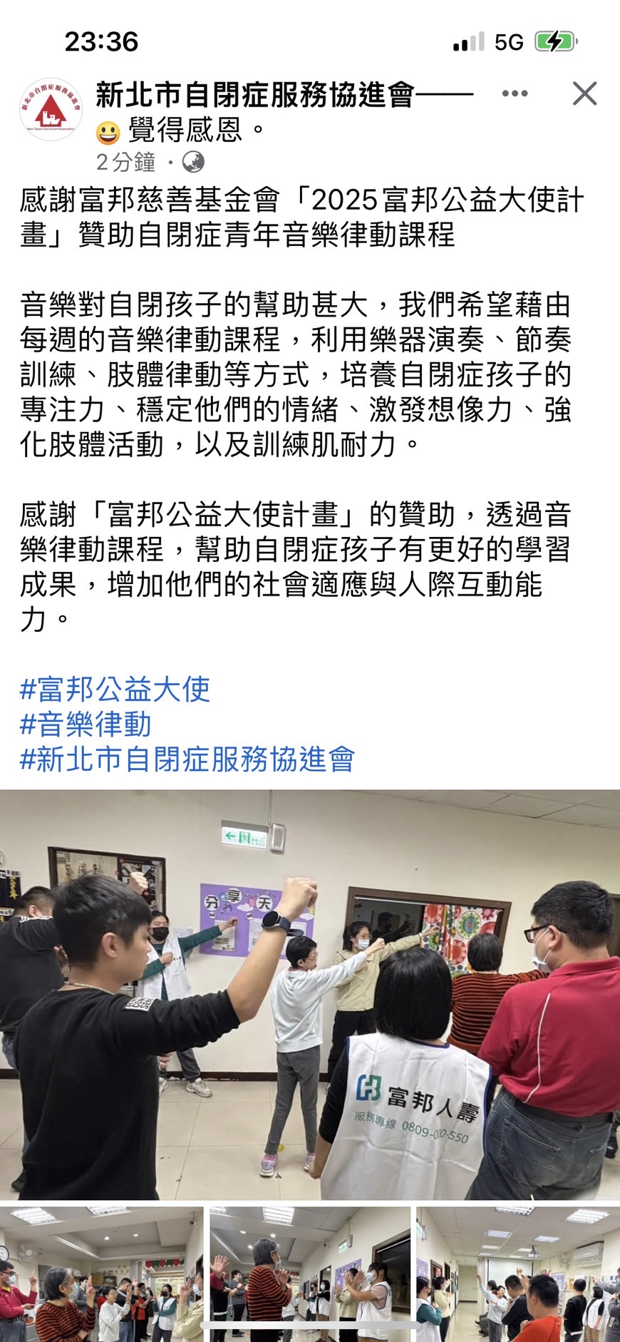 6.提升自信心:鼓勵自閉症青年參加訓練課程,進而參與大小型表演,得到成就感並提升自信心。