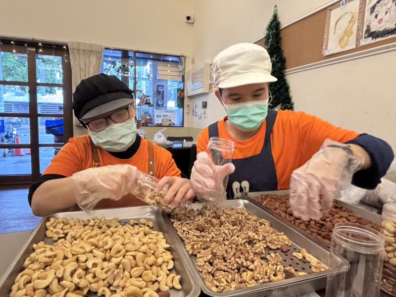 透過進貨理貨、堅果炒製與備料、產品包裝、禮盒組裝及行銷宣導等訓練項目,協助庇護員工提升食品製作與包裝技能,並培養基本銷售與宣傳能力,以增進其在庇護工場的工作表現與實作熟練度。