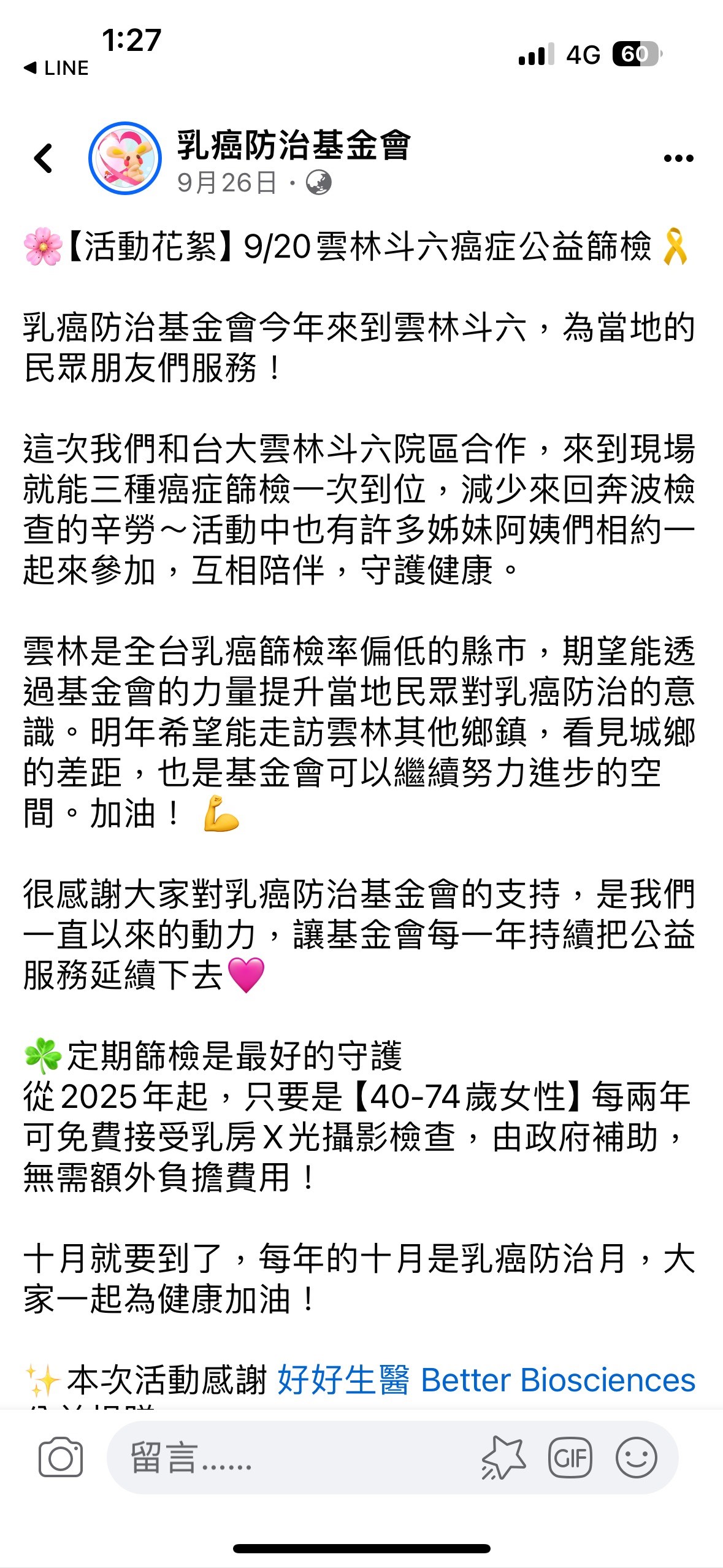 本次配合當地台大雲林醫療醫師護理師,在109年度活動中更提及109年至113年間四次富邦慈善基金會至台大雲林分院舉辦醫療病童關懷活動,並邀請momo大哥哥大姊姊帶動,讓病童心靈提升,顯見富邦慈善基金會類似活動已在雲林地區,默默深植公益印象,讓民眾對於本公司企業文化表達讚許,配合本次乳篩活動讓婦女朋友倍感富邦公益愛心處處看見。