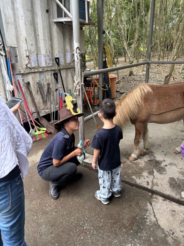 藉由與輔助馬和輔助犬的互動,讓參與者理解生命的價值與互動的重要性。